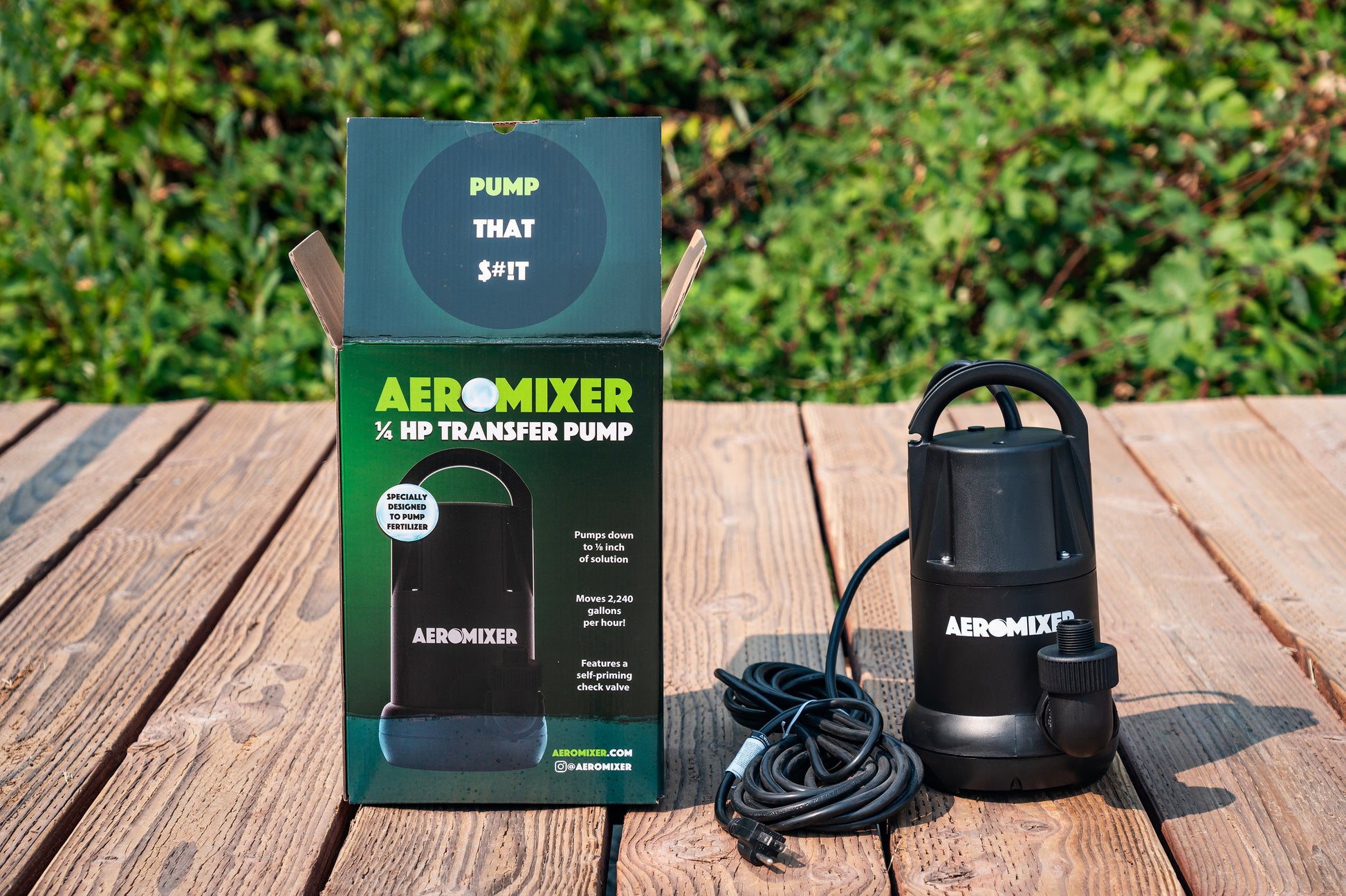 The Aeromixer Transfer Pump features a robust 1 HP or 1/4HP motor, ideal for handling tough jobs like water and fertilizer transfer. The larger model moves up to 5,120 gallons per hour with ease, perfect for heavy duty water pump tasks in outdoor environments. Whether for garden irrigation or pool draining, it performs reliably.