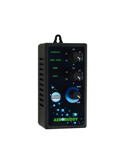 Say hello to Aerobuddy an easy-to-use tool to help farmers like you save time and grow happy plants. Aerobuddy gives you complete control of mixing + aerating in your feed tank when used with an Aeromixer, making it great for farmers with smaller tanks, those who simply want a more gentle agitation on compost teas, and those who prefer intermittent mixing. Choose the power level, set the run time, or control both at once and take the guesswork out of mixing.